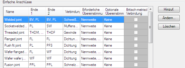 Sie können die Liste der Verbindungsteile für einfache Verbindungen nicht anpassen. Außerdem können Sie keine Plant 3D-Klassendefinitionen hinzufügen.