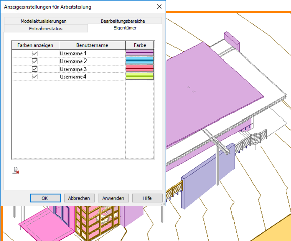 Die für den Eigentümer festgelegte Farbe wird im Modell angezeigt.
