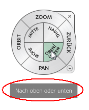 | Geschwindigkeitsfaktor | Wenn Sie das 2D-Navigationswerkzeug zum Navigieren in einem Modell verwenden, können Sie die Bewegungsgeschwindigkeit steuern. Die Bewegungsgeschwindigkeit wird dadurch gesteuert, wie weit der Mauszeiger vom Kreismittelpunktsymbol wegbewegt wird. Hier legen Sie die Bewegungsgeschwindigkeit fest.