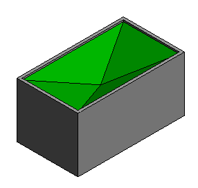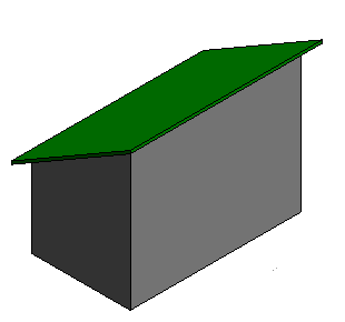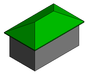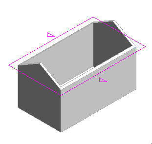 Zwei Kanten der Skizze sind als neigungsbestimmend definiert. Die Wände sind mit dem Dach verbunden und füllen daher die Giebelseiten des Dachs aus.