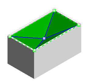 Mithilfe der Formbearbeitung können Punkte und Kanten unabhängig bearbeitet werden. In diesem Beispiel wird ein Punkt am Mittelpunkt des Dachs hinzugefügt und anschließend tiefer gelegt, um eine Vertiefung auf dem Dach zu erzielen.