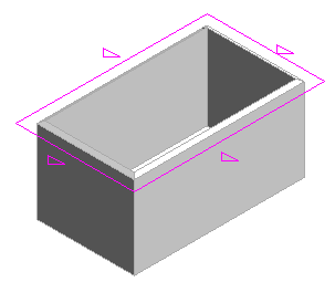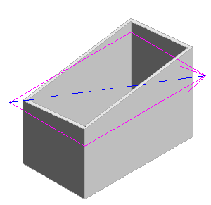 Verwenden Sie einen Neigungspfeil, um eine Neigung für ein Dach zu erstellen. Der Neigungspfeil muss nicht unbedingt einer Kante folgen und kann auch lediglich für Teile von Kanten verwendet werden. In diesem Beispiel definiert der Neigungspfeil die Neigung des Dachs zwischen zwei Ecken.