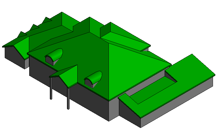 Im Beispielmodell wird eine Kombination aus Dachelementen zur Zusammenstellung des gesamten Dachs verwendet. Sie können jedes Dachelement einzeln auswählen und bearbeiten.