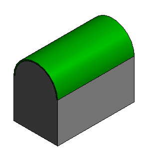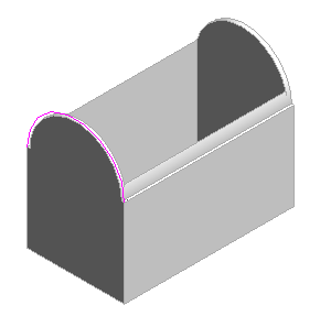 Mithilfe von Dach über Extrusion erhalten Sie eine Extrusion anhand der Form einer skizzierten Kante. In diesem Beispiel wird ein Bogen als Kante skizziert und anschließend zur Erstellung eines Dachs mit Tonnengewölbe verwendet. Die Wände sind mit dem Dachelement verbunden. Wählen Sie das Dach aus, und bearbeiten Sie mithilfe des Werkzeugs Profil bearbeiten auf der kontextabhängigen Registerkarte die Skizze des extrudierten Dachs.
