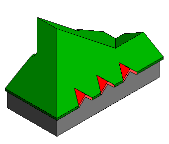 Mithilfe von Neigungspfeilen an den Segmenten einer Dachkante können Sie eine Mansarde erstellen.