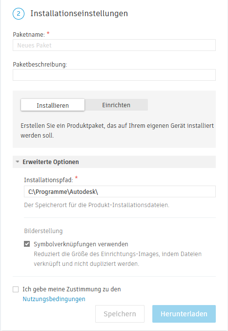 Der Vorgang entspricht dem Erstellen einer Einrichtung. Weitere Informationen zum Konfigurieren der benutzerdefinierten Installation finden Sie unter Revit-Einrichtungen.