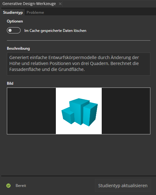 - Ein neuer Werkzeugsatz optimiert und vereinfacht die Erstellung und Aktualisierung von Studientypen. Um auf diese Werkzeuge zuzugreifen, klicken Sie auf Generative Design