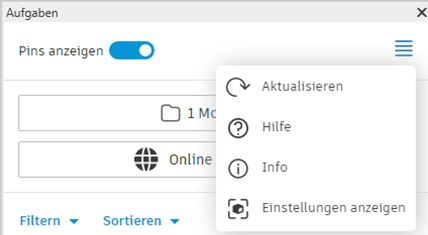 Die Ansichtseinstellungen für die Ansicht im Revit-Zusatzmodul Aufgaben finden Sie im Hamburger-Menü in der Gruppe Aufgaben.