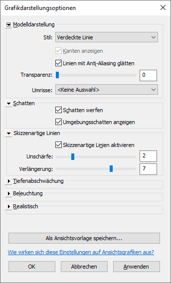 Für diese Ansicht werden die folgenden Einstellungen im Dialogfeld Grafikdarstellungsoptionen verwendet: