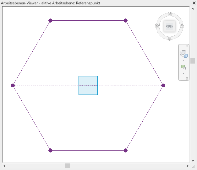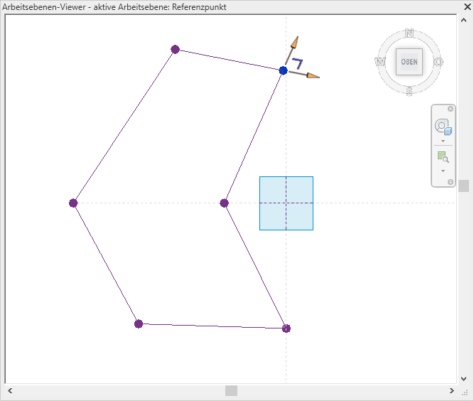 Der Arbeitsebenen-Viewer ist in allen Modellansichten in der Projektumgebung verfügbar. Die Standardausrichtung ist die aktive Arbeitsebene der zuletzt aktiven Ansicht.