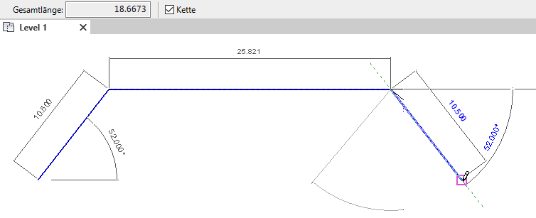 Beachten Sie, dass im Feld Gesamtlänge in der Optionsleiste die jeweils aktuelle Länge der Kette angezeigt wird. Durch Doppelklicken schließen Sie die Kette ab.