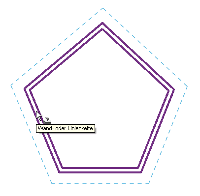 Wenn Sie den Versatz als Wert angegeben haben, wird eine Vorschaulinie unter diesem Abstand von den hervorgehobenen Elementen an der Seite, an der sich der Mauszeiger befindet, angezeigt (siehe Abbildung).