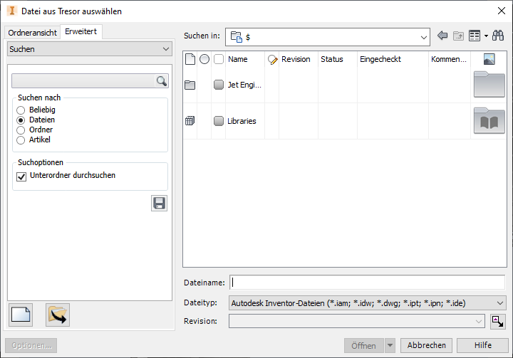 Informieren Sie sich über die Funktionen im Dialogfeld Datei aus Tresor auswählen, damit Sie Ihren Konstruktionsprozess verbessern können.