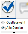Wählt automatisch alle Objekte im Dialogfeld Datei abrufen/auschecken oder nur die Objekte, die bereits vor dem Öffnen des Dialogfelds Datei abrufen/auschecken ausgewählt waren. Dies ist eine praktische Funktion, wenn Sie die Schaltfläche Untergeordnete einschließen, Übergeordnete einschließen oder Verknüpfungen einschließen aktiviert haben und eine schnelle Möglichkeit suchen, um die zugehörigen Objekte zum Auschecken auszuwählen. Tipp: Bewegen Sie den Mauszeiger über das Symbol, um die aktuellen Einstellungen anzuzeigen.
