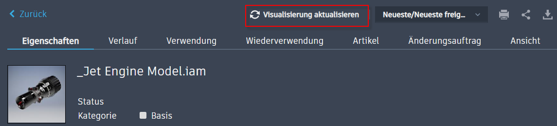 Alternativ wählen Sie den Befehl Visualisierung aktualisieren auf der Detailseite der Datei aus.