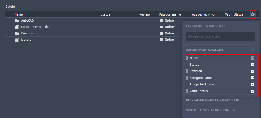 - Wählen Sie die anzuzeigenden Eigenschaften aus.