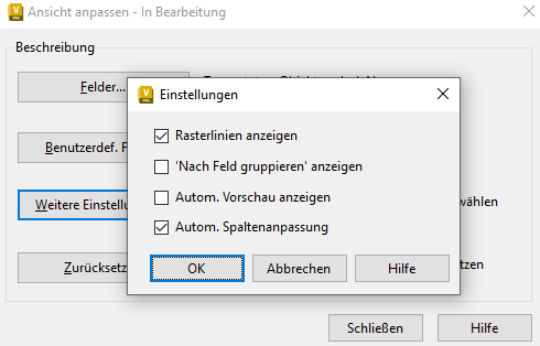 Anmerkung: An einer Ansicht vorgenommene Änderungen werden automatisch in der Ansichtsdefinition gespeichert.