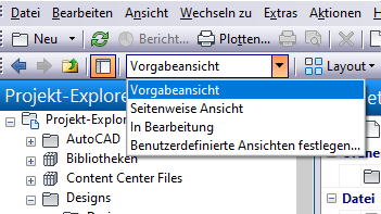 Wenn Sie die Ansicht anpassen, ändern Sie die aktuelle Ansicht. Die aktuelle Ansicht befindet sich auf dem Werkzeugkasten Erweitert. Klicken Sie auf den Abwärtspfeil, um eine andere Ansichtsoption auszuwählen.
