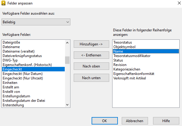 - Wählen Sie im Dialogfeld Felder anpassen die Felder aus, die Sie zur Verfügung stellen möchten.