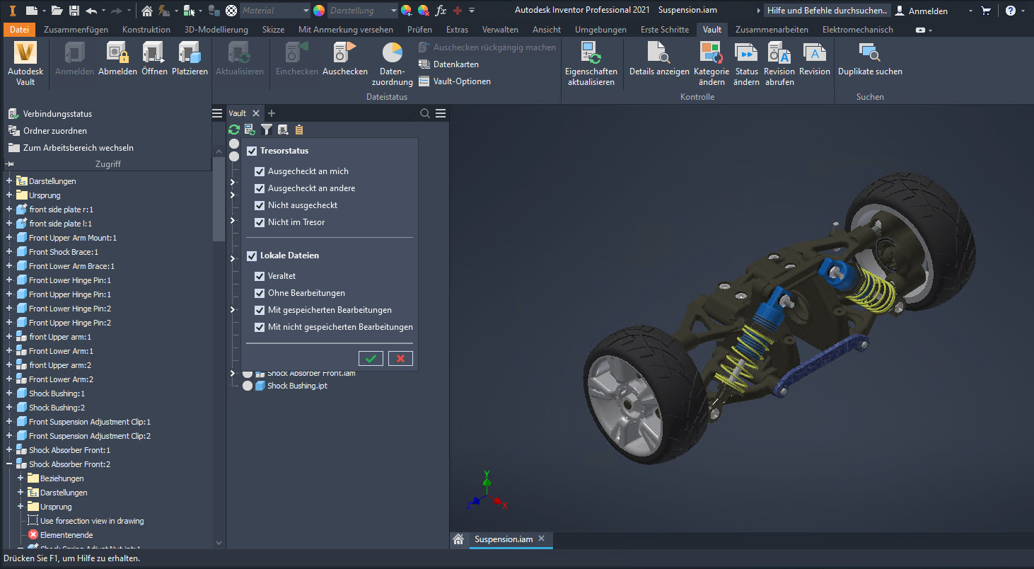 Die Vault-Multifunktionsleiste und der Browser in Inventor unterstützen nun das dunkle Thema.