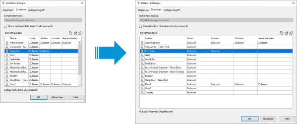 Um auf der Registerkarte Sicherheit einfacher arbeiten zu können, kann die Größe des Dialogfelds Details jetzt verändert werden.
