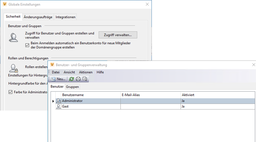 Administratoren können nun viele Benutzer und Gruppen in einer Benutzeroberfläche anzeigen und verwalten, ohne zwischen verschiedenen Dialogfeldern wechseln zu müssen.