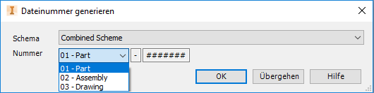 Wenn Sie ein Nummernschema erstellen, können Sie eine Beschreibung für eine vordefinierte Liste erstellen. Diese Beschreibungen für Nummernschemata werden jetzt angezeigt, wenn Sie eine neue Datei in Inventor oder AutoCAD erstellen und speichern.