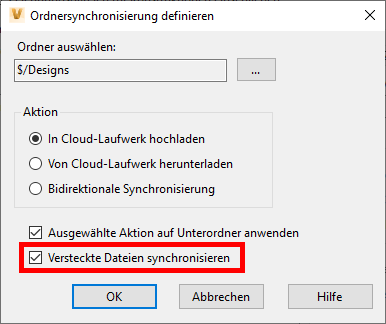 Mit diesem neuen Update können Sie jetzt ausgeblendete Dateien in geplante Synchronisierungen in Project Sync einschließen. Vom System generierte DWF-Dateien werden automatisch mit der Cloud synchronisiert, wenn Sie diese Option auswählen.