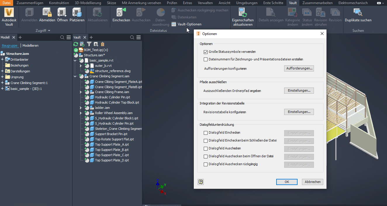 - Wählen Sie Vault-Optionen aus der Autodesk Vault-Multifunktionsleiste.