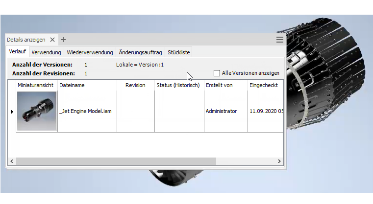 - Neue Registerkarten (Verwendung, Änderungsauftrag und Stückliste) werden hinzugefügt, um Informationen über das Modell anzuzeigen.