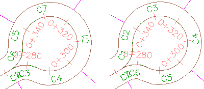 You will renumber the curve table tags around the cul-de-sac on the East Street alignment so that they follow a clockwise pattern. You will use the Table Tag Numbering dialog box that you examined in the previous exercise to specify the starting number and increment with which to renumber the table tags.