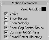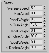 The Motion Parameters rollout lets you specify a Delegate object's characteristics, including speed, acceleration, and other factors. It also lets you associate the delegate with a biped.