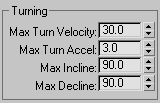These parameters affect the delegate's turning behavior; that is, how it changes direction in response to forces applied by crowd behaviors.