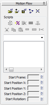 The Motion Flow rollout displays when Motion Flow mode is active on the Biped rollout. You can load, append, and save motion flow editor files (MFE), and open the Motion Flow Graph and Shared Motion Flow dialogs using controls on this rollout.