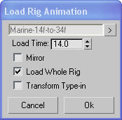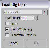 When a pose or animation file is being loaded, all the load parameters are “live.” You can change the loaded file, the time of the load, or any of the parameters related to how the pose is loaded. As the artist, you can validate the loaded pose by scrubbing the time slider and view the results of the loaded pose or animation data before commiting to the result by clicking OK.