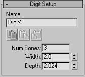 Access the Digit Setup rollout by selecting a digit bone in the viewport. These settings affect the entire digit to which the bone belongs.