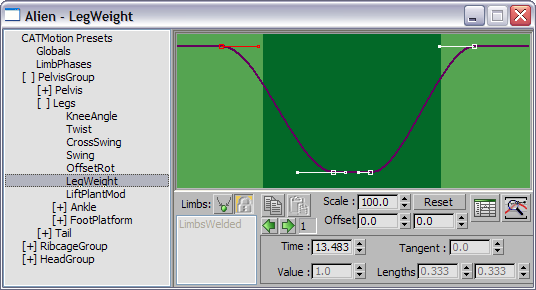 The other controller important to retargeting is called LegWeight. It can be found with KneeAngle under Legs in the CATMotion editor.
