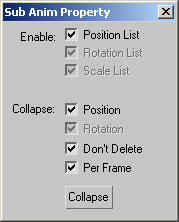 Position List When turned on, selects the Position controller to be collapsed into the Biped SubAnim track.