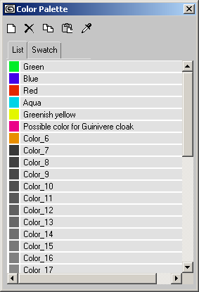 Displays the colors in the palette, along with their names.