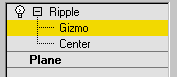At this sub-object level, you can transform and animate the gizmo like any other object, altering the effect of the Ripple modifier. Translating the gizmo translates its center an equal distance. Rotating and scaling the gizmo takes place with respect to its center.