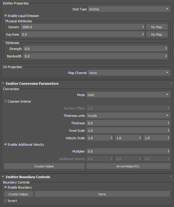 - When enabled, allows the emitter to produce liquids. This parameter can be animated.