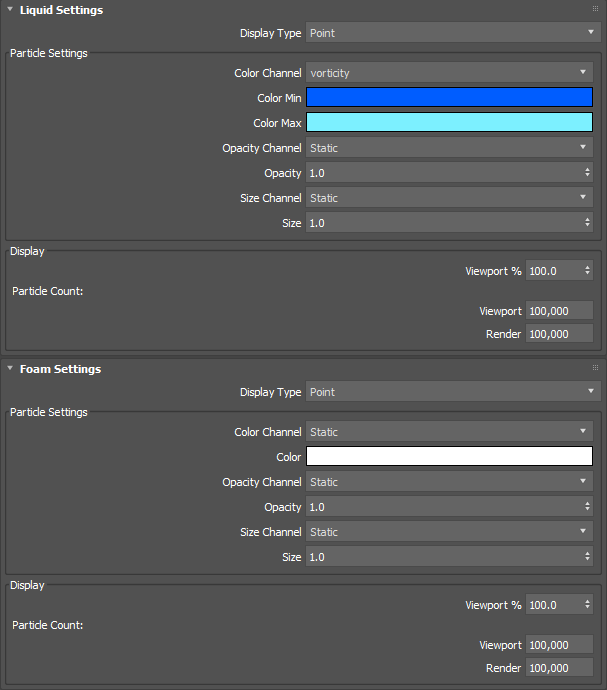 - Shows the number of foam particles being displayed in the viewport.