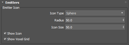 Use the Emitters rollout to set emitter options for the selected solver. You can also set or change these options in the Create/Modify panel window.