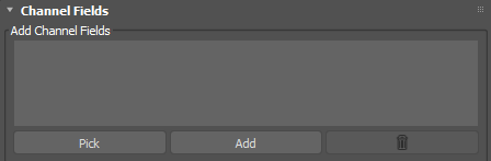 - Click Pick to pick objects from the scene to add as a channel field, or click Add to select a channel field from a dialog. Click Delete to delete an existing selected channel field.