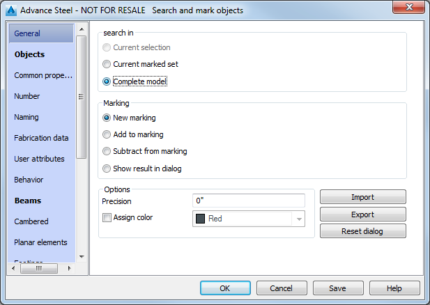 Note: The elements can be selected (single selection) or selected using AutoCAD tools, such as crossing windows or enclosing windows. You can also use a check out by filter to select a group of elements that have the same properties.
