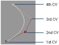 The first CV in the curve is shown as a square and the second as a “U” instead of a cross. This helps show the direction of the curve.