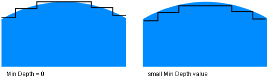 Using Blend Offset is a better method of solving self-shadowing problems. Whereas Min Depth moves the entire shadow casting surface an equal amount, Blend Offset moves different surface points different amounts, based on the probability that the original point on the shadow map was correct.
