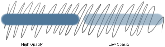 Opacity is a way of representing how “see-through” a brush’s paint is. (Opacity is the opposite of transparency.) You cannot see anything underneath paint that has an opacity of 1. The lower the opacity, the more you can see through the paint. Paint that has an opacity of 0 is perfectly clear and invisible.