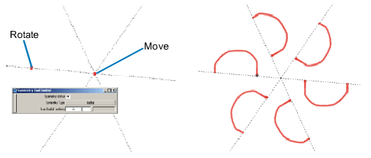 A number of axes of symmetry (equal to the value of Num Radial Sections) appear as dotted lines radially emanating from a center point.