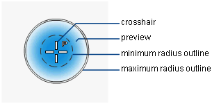 To display or hide the brush radius set Show Brush cursor outline to one of the following:
